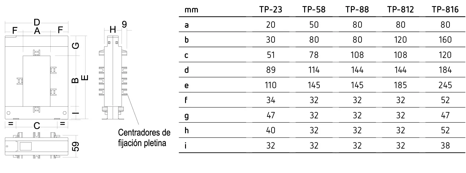 CIRCUTOR Transformadores de intensidad de núcleo partido TP-88 600/5.145x144x50 (axhxf mm). Pletina 80 x 80 mm.
